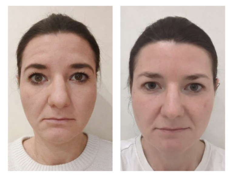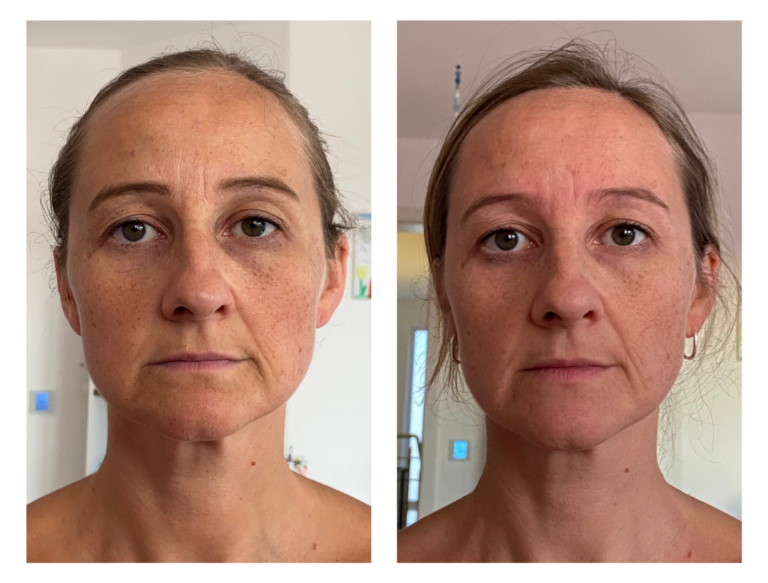 Erst durch Face Yoga sowie gezielte Faszien- und Lympharbeit veränderte sich mein Gesicht sichtbar: ein offenerer Blick, eine entspannte Stirn, klarere Konturen.